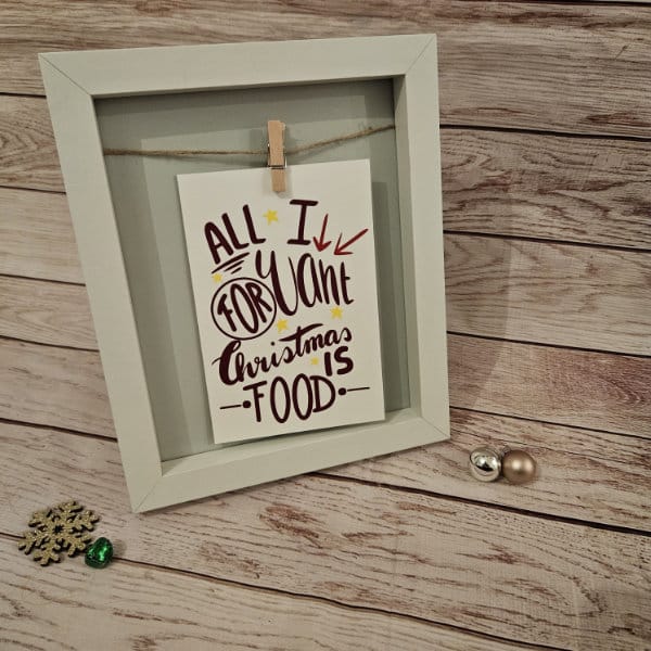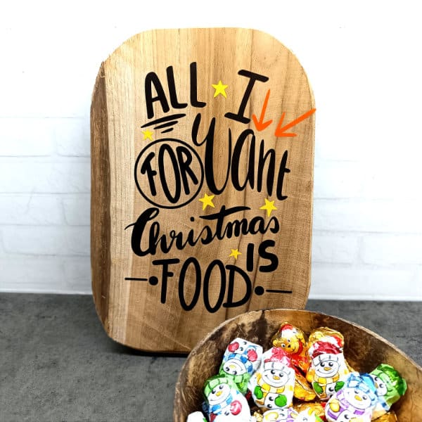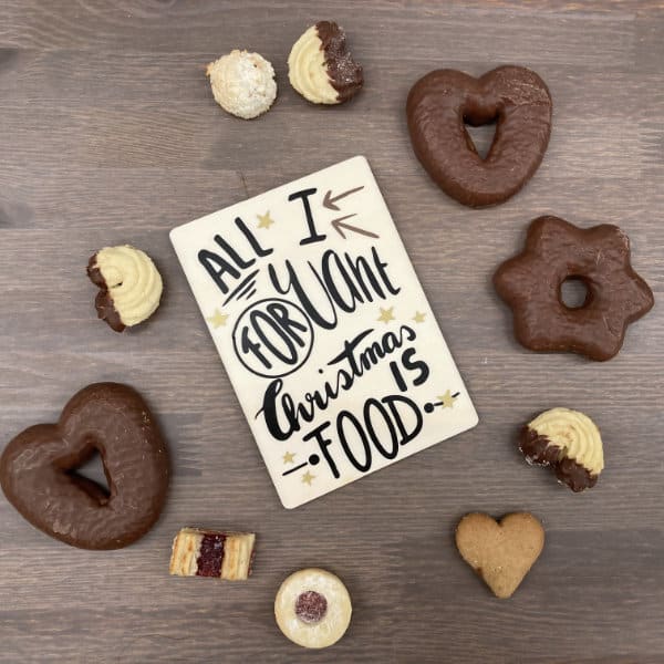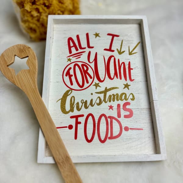 Vergiss Glitzer, Geschenke und den ganzen Weihnachtsstress – was wir wirklich wollen, ist Essen! Mit meiner Plotterdatei „All I Want“ bringst Du diese simple Wahrheit auf den Punkt.