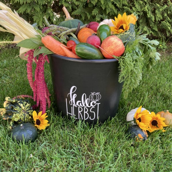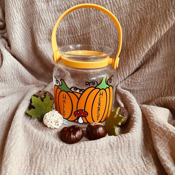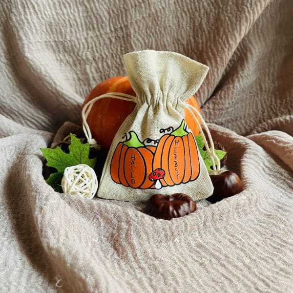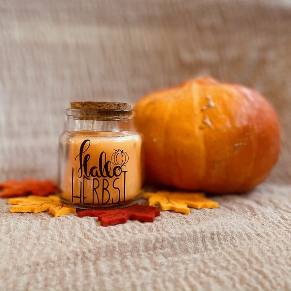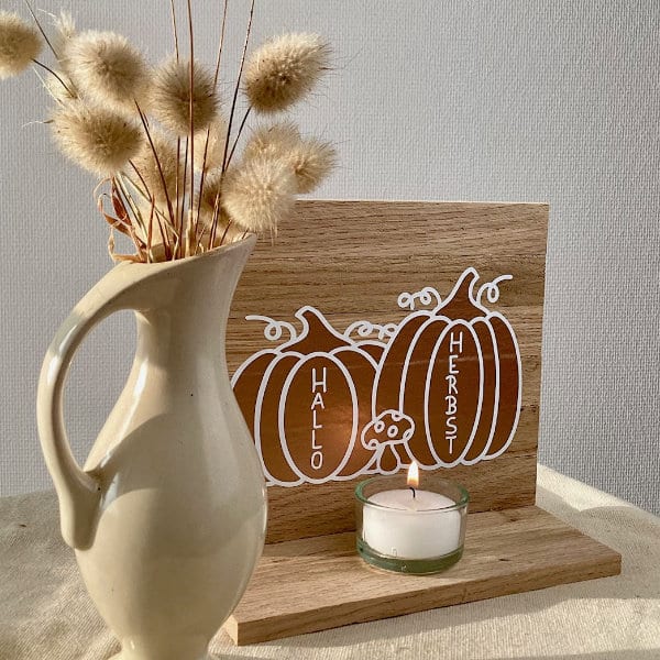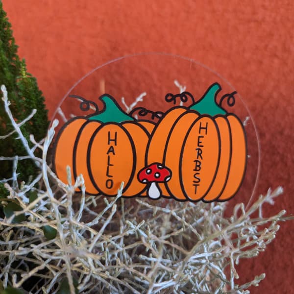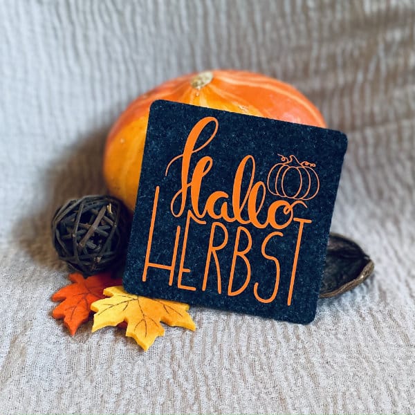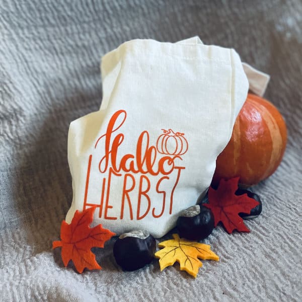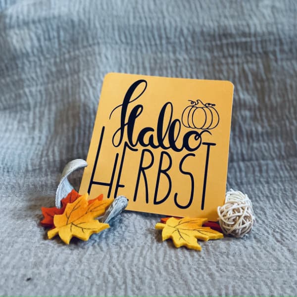 1. „Hallo Herbst“ Schriftzug mit Kürbis: