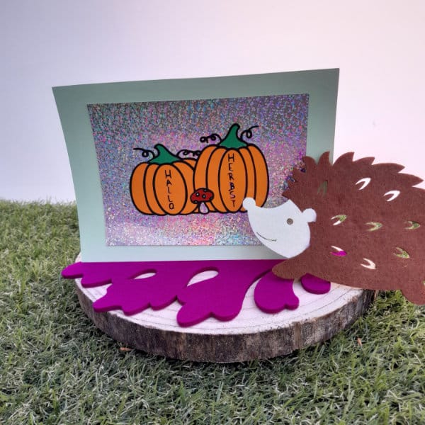 2. Zwei Kürbisse mit „Hallo“ und „Herbst“: