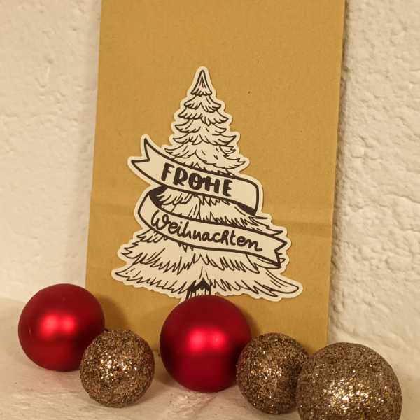 Diese Datei ist ein echter Hingucker für die Weihnachtszeit! Die Tanne mit Weihnachtsbanner zeigt eine große, imposante Tanne, wunderschön detailliert gezeichnet. Um die Tanne herum liegt ein geschwungenes Banner, auf dem Frohe Weihnachten steht – perfekt, um sofort weihnachtliche Stimmung zu zaubern.