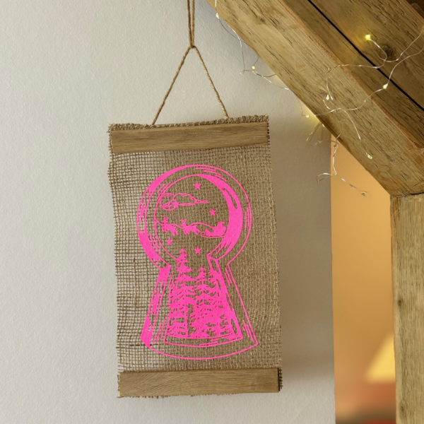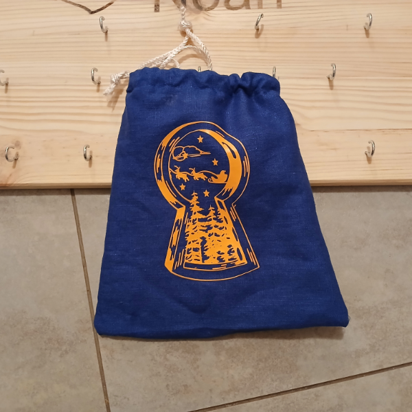 Wenn du durch das Schlüsselloch blickst, siehst du unten einen stillen Winterwald, der sofort dieses gemütliche, ruhige Gefühl auslöst. Und oben – wie in einem kleinen Weihnachtsfilm – fliegt der Schlitten des Weihnachtsmanns durch die Luft. Ein Anblick, der dich direkt kurz innehalten lässt und zum Träumen einlädt.